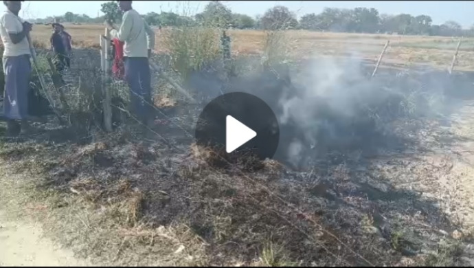 आग तेजी से फैलने लगी जिससे आसपास के खेतों में भी खतरा पैदा हो गया घटना को देख स्थानीय ग्रामीण तुरंत मौके पर पहुंचे और कड़ी मशक्कत के बाद पानी का फुहारा डालकर आग पर किसी तरह काबू पाया।