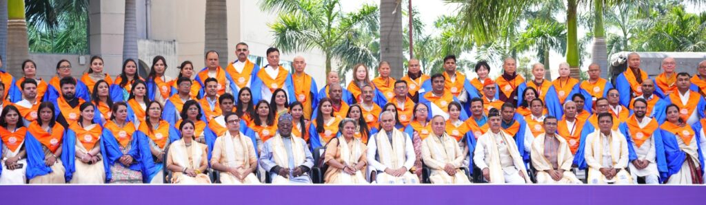 दीक्षांत समारोह में कुलपति प्रो. (डॉ.) प्रमोद कुमार शर्मा ने विश्वविद्यालय की ओर से सभी का आधिकारिक स्वागत करते हुए विश्वविद्यालय का प्रतिवेदन प्रस्तुत करते हुए कहा कि यह गौरवपूर्ण अवसर विश्वविद्यालय की उत्कृष्ट उपलब्धियों और मूल्यों—शिक्षा, सेवा, संस्कार व राष्ट्रीयता का प्रतीक है। उन्होंने बताया कि नैक द्वारा ‘ए’ ग्रेड से मान्यता प्राप्त यह संस्थान अनुसंधान, नवाचार, स्टार्टअप और अंतरराष्ट्रीय सहयोग में निरंतर प्रगति कर रहा है। राष्ट्रीय शिक्षा नीति 2020 के अनुरूप विद्यार्थियों के कौशल व रोजगारपरक विकास पर विशेष बल दिया जा रहा है। सामाजिक समावेशन, महिला सशक्तिकरण व स्वास्थ्य सेवाओं में भी विश्वविद्यालय अग्रणी है। इस अवसर पर 2481 उपाधियाँ प्रदान की जा रही हैं जिनमें 115 पी.एच.डी. की उपाधियाँ हैं। इसके अतिरिक्त विभिन्न विषयो में सर्वाधिक अंक प्राप्त करने वाले 45 स्नातक छात्र/ छात्राओं को स्वर्ण पदक एवं स्नातकोत्तर परिक्षाओं के 23 टॉपर को उत्कृष्टता प्रमाण पत्र देकर सम्मानित किया गया। वहीं विश्वविद्यालय की सर्वश्रेष्ठ छात्र के लिए डॉ. ईबेन एस जॉन एवं छात्रा के लिए कुमारी आस्था गुप्ता को चांसलर मेडल एवं संघमाता मुक्ति भटनागर मैमोरियल मेडल, तथा एम.बी.बी.एस. की परीक्षा में सर्वाधिक अंक प्राप्त करने वाली छात्रा साची गुप्ता एवं डेंटल की छात्रा जया रानी सिंह को गोल्ड मेडल दिया गया। इसके अतिरिक्त एम.बी.बी.एस. की प्रथम प्रोफेशनल परीक्षा में प्रथम आने वाले विद्यार्थियों अर्श जैन एवं श्रेया रस्तोगी को 11000 रुपए की नकद राशि देकर सम्मानित किया गया। कुलपति डॉ. शर्मा ने बताया कि विश्वविद्यालय द्वारा 70 से अधिक द्वियांगजनों को विभिन्न पदों पर समायोजित किया हुआ है। डॉ. शर्मा ने सभी डिग्री प्राप्त करने वाले विद्यार्थियों को डिग्री प्रदान की व सभी को छात्र संकल्प दिलवाई। इस अवसर पर पीएचडी की उपाधि प्राप्त करने वालों में डॉ. सैयद ज़फर हुसैन, डॉ. डी.के. सक्सेना, डॉ. गरिमा जैन, डॉ. दिव्या मिश्रा, डॉ. विशाल सहाय, डॉ. रेशु रानी, डॉ. ऋषभ जैन, कर्नल डॉ. हरीश कुमार, डॉ.अंकित कुमार, डॉ. चारमिरी आदि रहे।