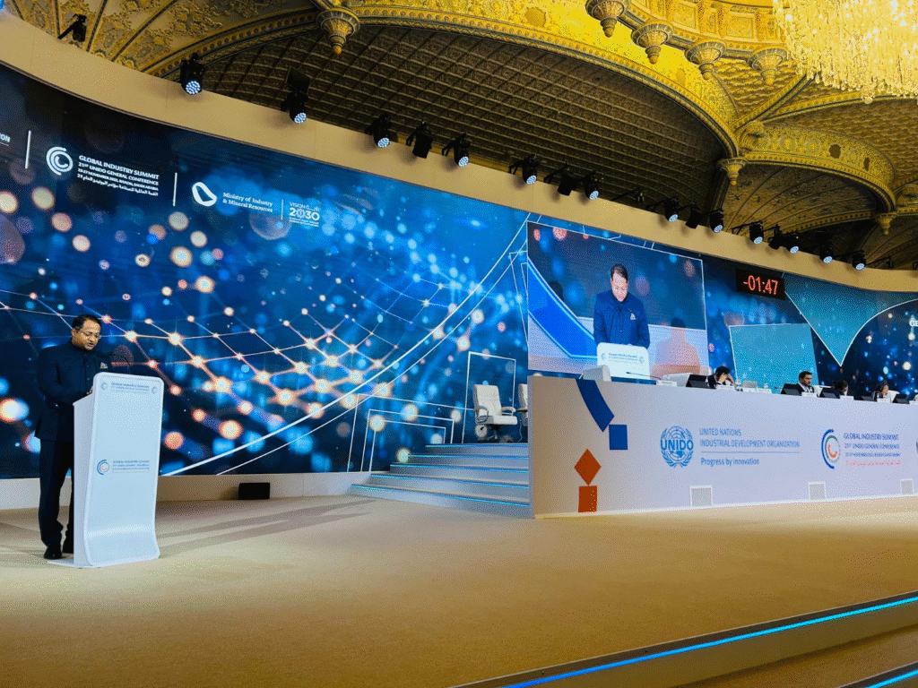 रियाद। भारत ने सऊदी अरब की राजधानी रियाद में आयोजित यूनाइटेड नेशंस इंडस्ट्रियल डेवलपमेंट ऑर्गनाइजेशन (यूएनआईडीओ) की जनरल कॉन्फ्रेंस में आने वाले कुछ वर्षों में देश को मैन्युफैक्चरिंग हब के तौर पर तैयार करने के अपने संकल्प को दोहराया। इस दौरान देश ने 2047 तक ‘विकसित भारत’ के अपने सपने को साकार करने के लिए मजबूत विनिर्माण की आवश्यकता पर जोर दिया।