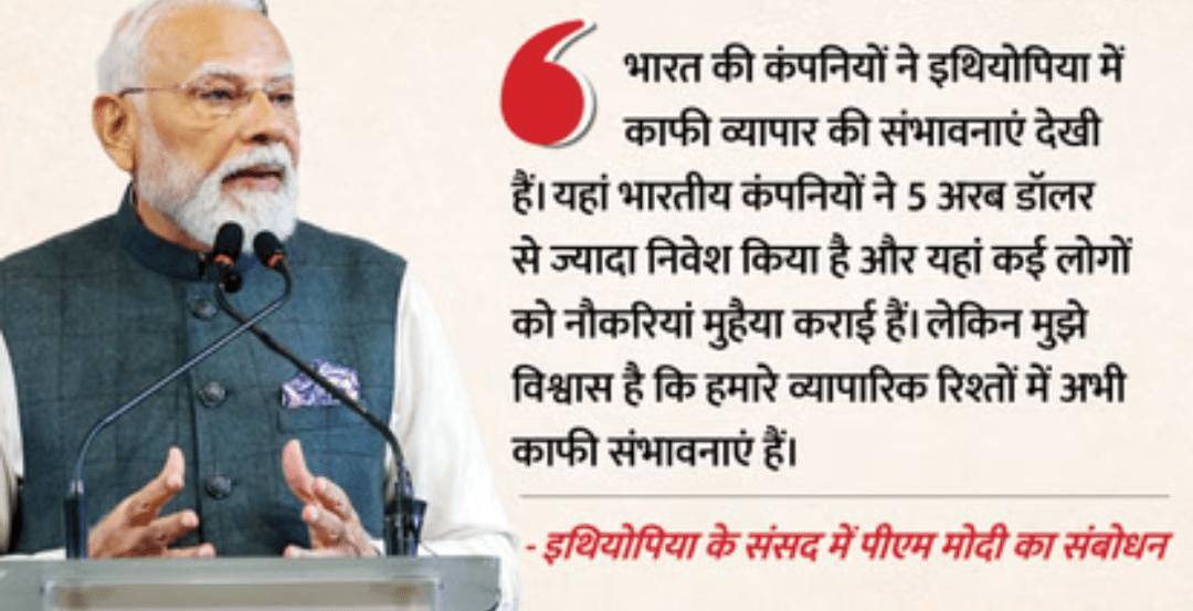 भारत-इथियोपिया के आर्थिक रिश्तों पर भी बोले पीएम