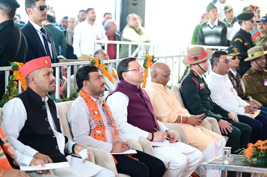 मुख्यमंत्री पुष्कर सिंह धामी ने अपने संबोधन में कहा कि हमारे वीर सैनिकों और स्वतंत्रता सेनानियों के त्याग और बलिदान से ही आज का भारत सशक्त और सुरक्षित है। उन्होंने कहा कि राज्य सरकार शहीद परिवारों, पूर्व सैनिकों और स्वतंत्रता संग्राम सेनानियों के कल्याण के लिए सतत कार्य कर रही है। मुख्यमंत्री ने कहा कि लैंसडाउन विधानसभा क्षेत्र में ₹102 करोड़ से अधिक की लागत वाले विकास कार्यों का लोकार्पण और शिलान्यास किया गया है, जिनमें सड़क, पुल, स्वास्थ्य, शिक्षा, पेयजल और ग्रामीण विकास से संबंधित परियोजनाएं शामिल हैं।